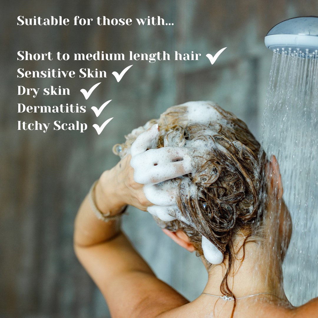 The goat’s milk soap lathers up well and leaves your hair feeling soft and smooth.